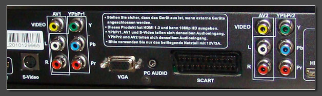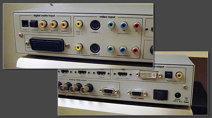 adapters), a second RGB Scart input, three addititonal D-Terminal inputs plus full RCA audio switching for every input. |