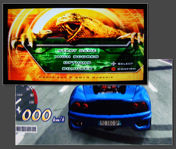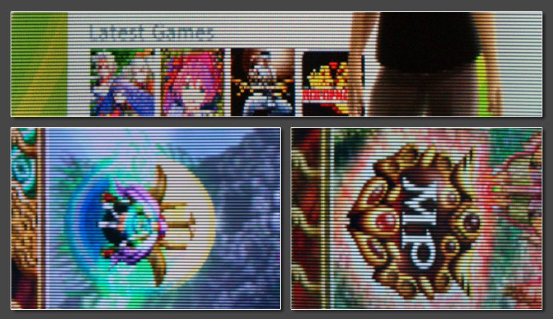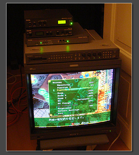 II DX running on a PS2 through a Videon Omega HDP linedoubler and two 480p titles (Death Smiles and ESPGaluda II running on a XBox360). |