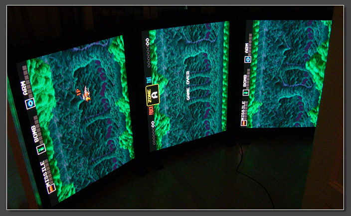 - Several Extron RGB interfaces (201Rxi, 203Rxi, 164xi) - Arcadeforge SLG3000 and Sync Strike - Extron Super Emotia and 2x Super Emotia GX (VGA to 240p RGB converters) - Matrix Triplehead2Go (easiest way to setup a 3-monitor Darius rig)