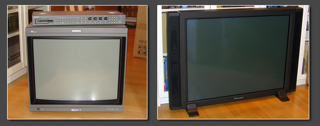 - 2x Sony BVM-20F1E (20") the best CRT monitors available for 240p retrogaming - 3x Pioneer PDP-V402E (40" 4:3 Plasma set) - Pioneer PDP-V401E (40" 4:3 Plasma set) |