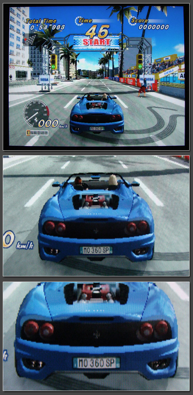 check for irregularities with the TV's scaling engine. The Mega Drive versions runs in raw 240p, while the Dreamcast versions offers 240p, 480i and 480p for VGA-equipped DC systems.