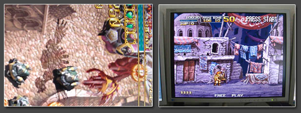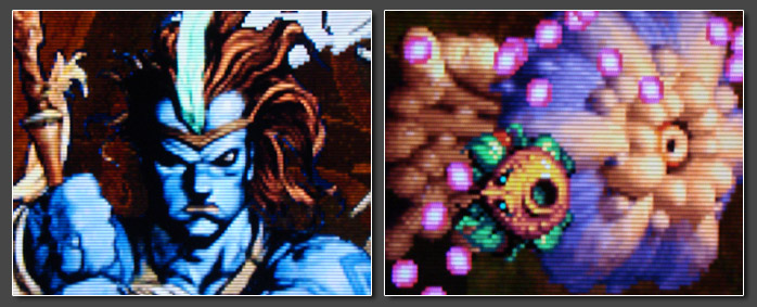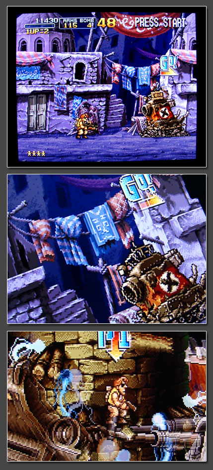 The following screenshots show a 480i title (Metal Slug 3 running on a PS2 through an XRGB-3), a 240p title (Fantasy Zone