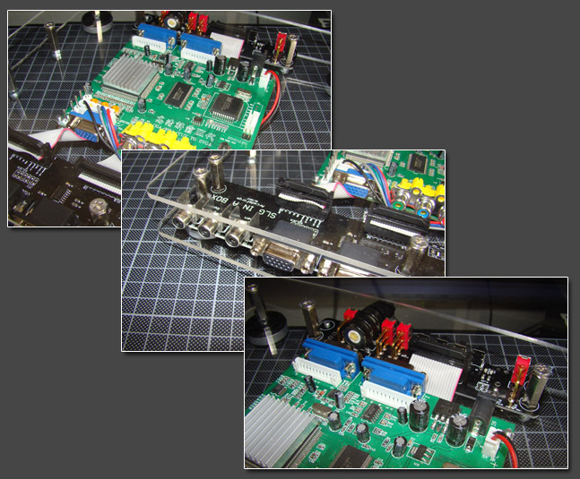 SLG3000 in a tiny PCB developed by Winfried Ellenbeck and Jochen Zurborg in Germany. It takes in VGA signals (31khz and higher) and outputs the same signal WITH emulated scanlines. The project was announced